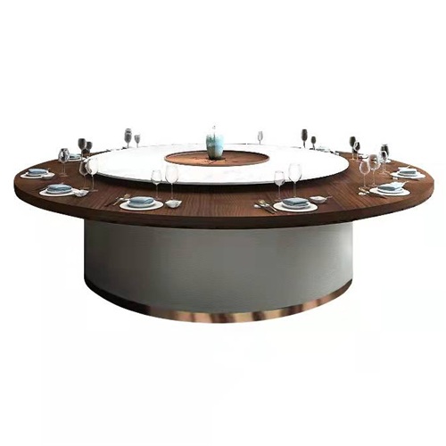 別墅巖石板實(shí)木多功能旋轉(zhuǎn)電動(dòng)餐桌子圖