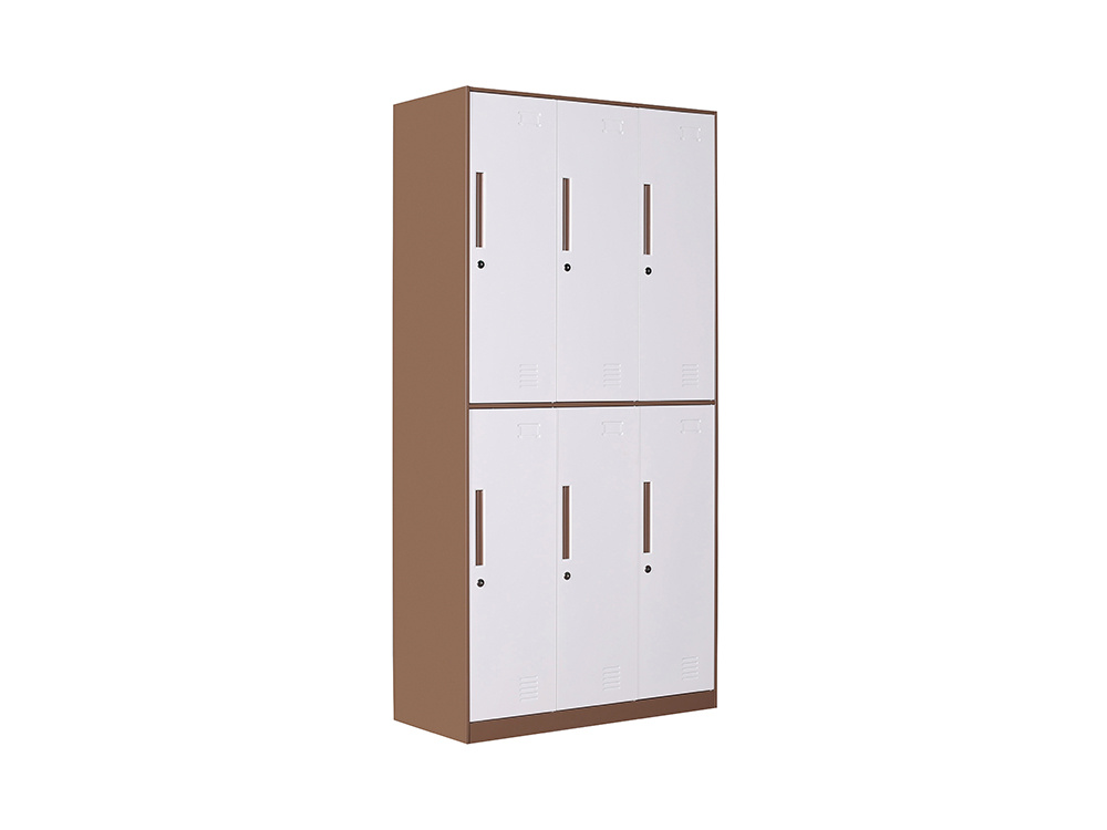 ● 一體結構設置,上部玻璃對開門,內置1層層板可調高度,內置物品可視,便于拿取,中間2個抽屜,下部對開鐵門、門內一格板,設置有拉手和鎖。