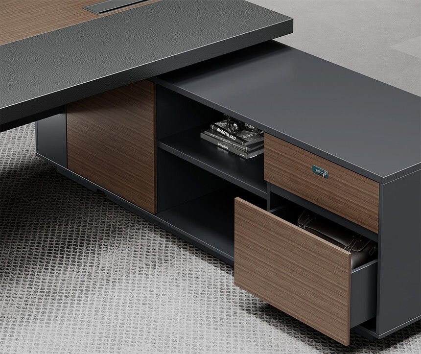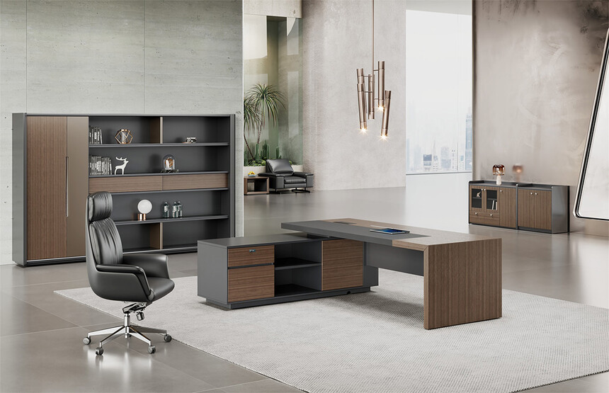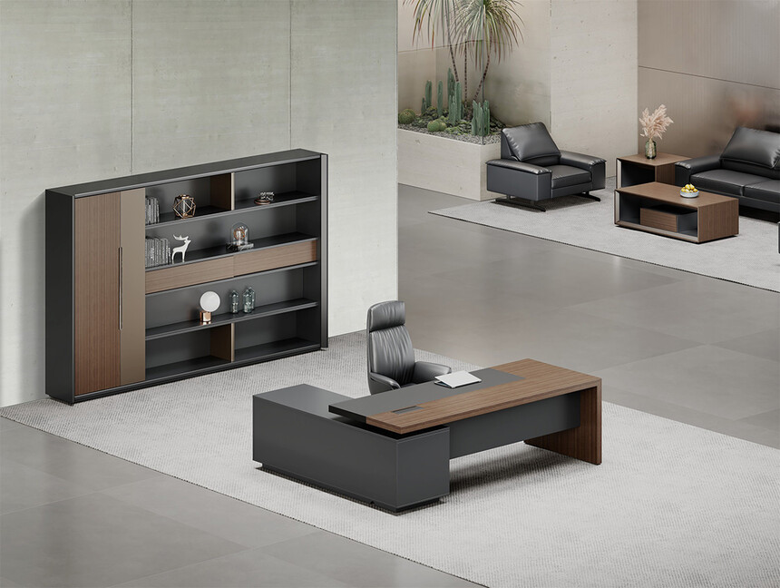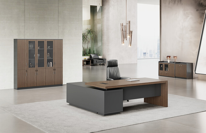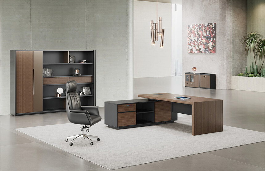 明哲系列辦公家具,采用直紋胡桃和星空灰實色漆元素,高檔實木質(zhì)感飾面,深邃飽滿,紋理清晰,內(nèi)蘊深厚。搭配簡約端正的造型設(shè)計,臺腳的斜切裝置,還有產(chǎn)品的布局變化,錯落有致,承前啟后,展現(xiàn)極致簡潔和視覺效果的完美詮釋。低調(diào)又不失時尚,穩(wěn)重又不失靈動,既營造現(xiàn)代時尚的情緒,還給當今辦公環(huán)境注入明亮、輕松的舒適感。