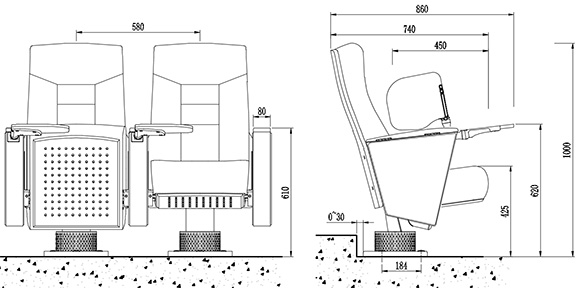 | 座椅深度:860±10mm,扶手高620±10mm:最小排距:900mm。 |