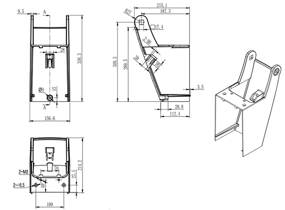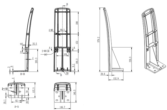 鋁合金扶手框架尺寸及技術(shù)要求: