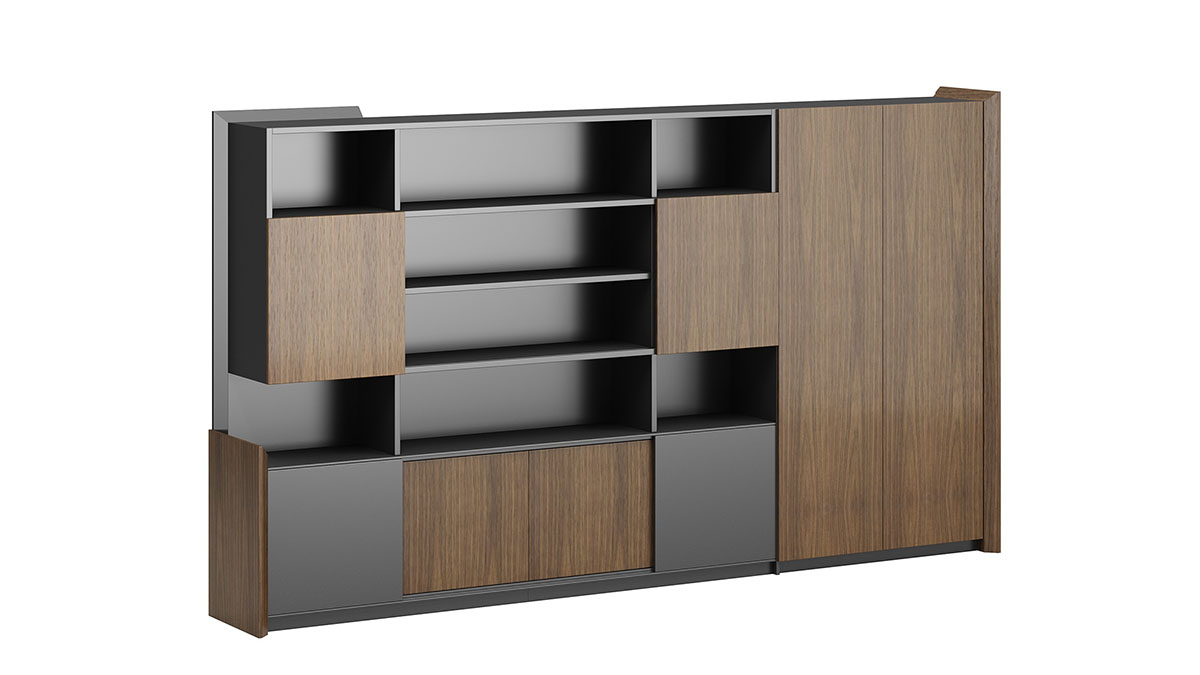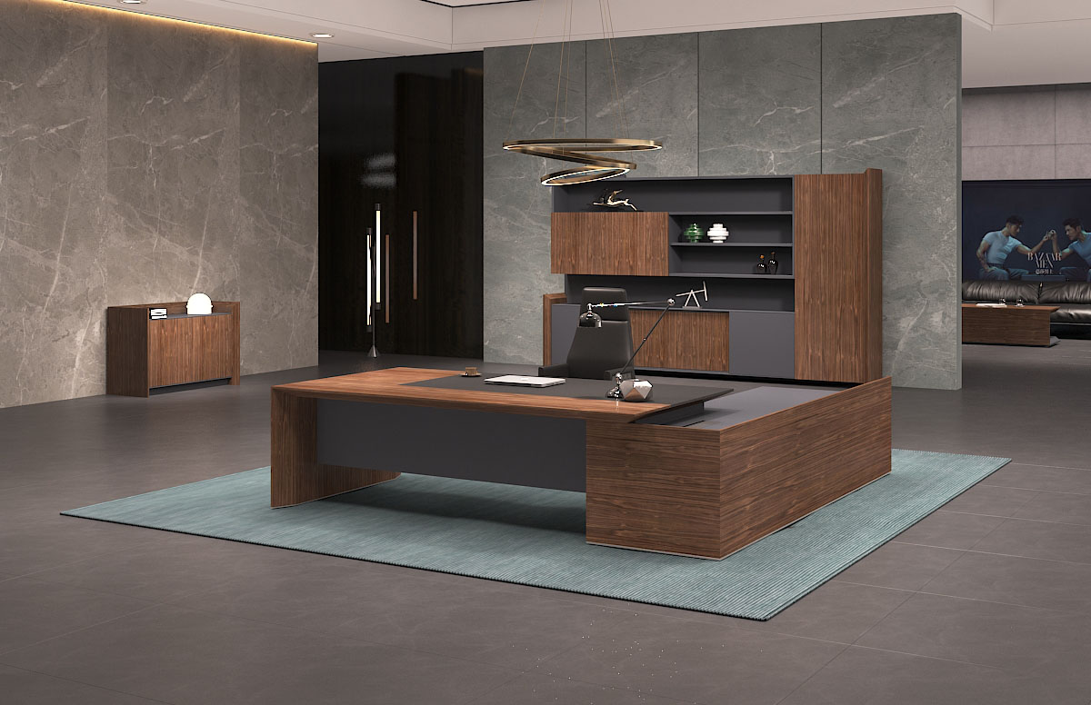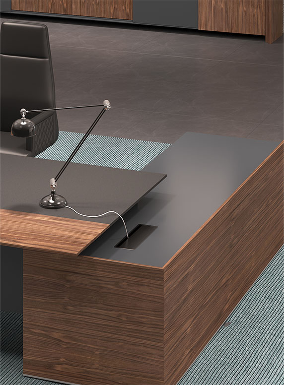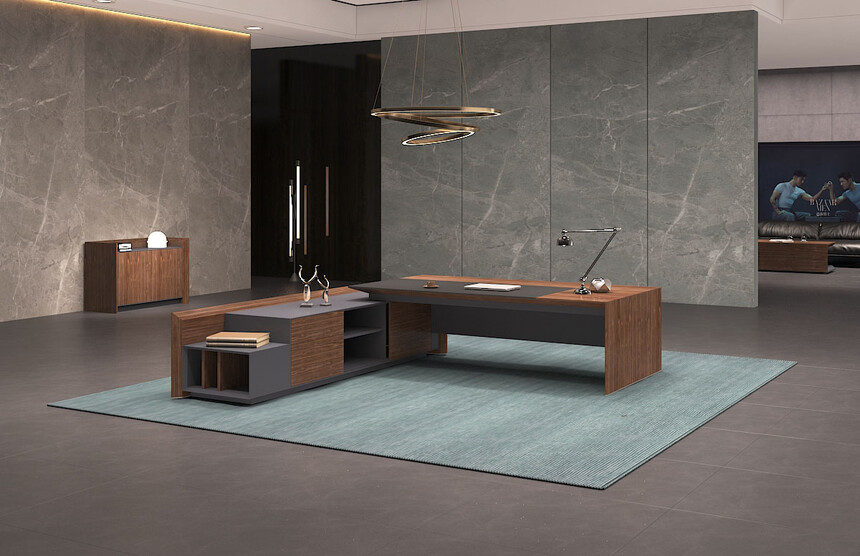 產(chǎn)品的設計上斜切面元素應用一脈相承,且通過天然胡桃木 紋、灰咖金屬漆及超纖皮革的有機結(jié)合,呈現(xiàn)出極致簡約之 范,但又不失穩(wěn)重大氣之感,恰好的適應現(xiàn)代商務辦公需求。