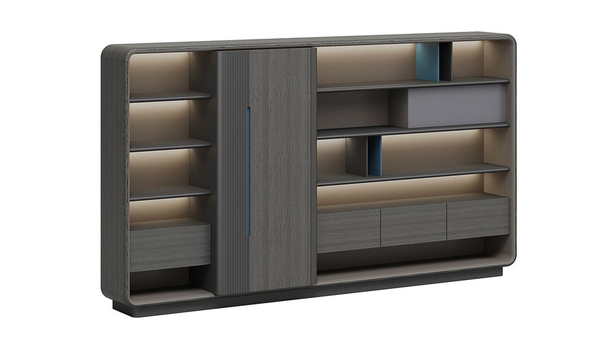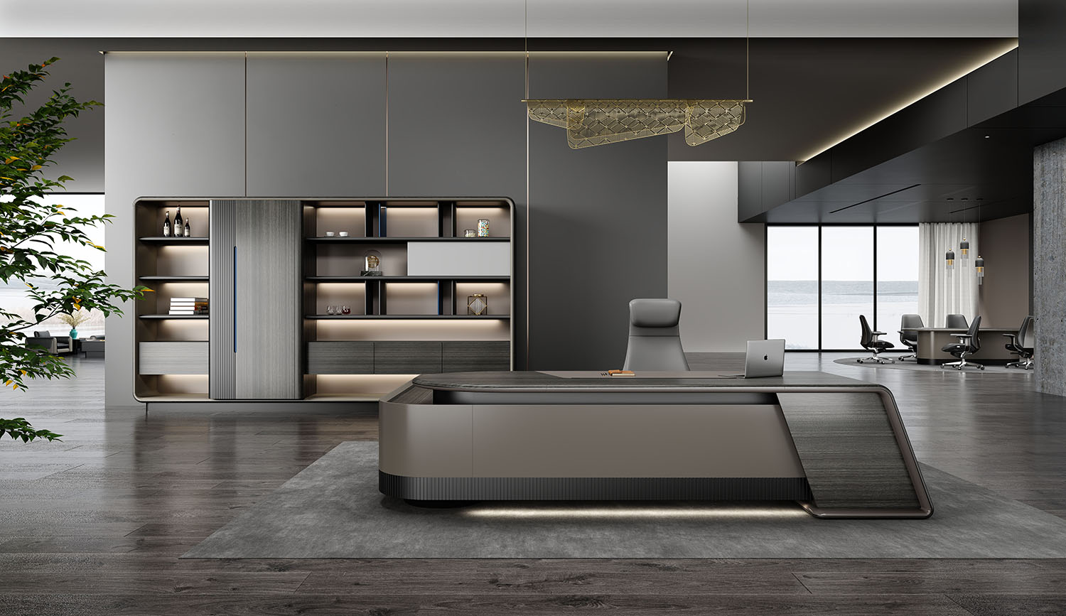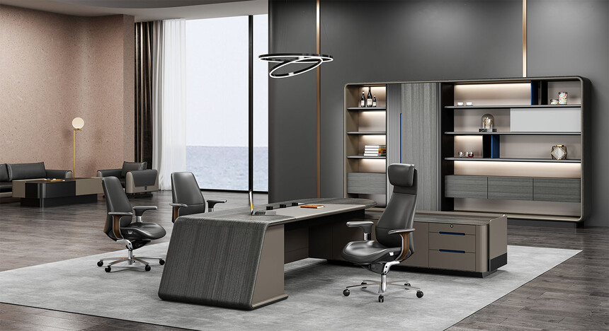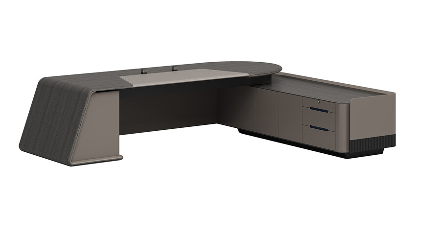 浩睿系列正如產(chǎn)品名“浩?!彼⒁庖粯?,是凝聚了產(chǎn)品研發(fā)創(chuàng)新思維與廣大智慧的結(jié)晶,專為商界精英與企業(yè)領(lǐng)袖而設(shè)計。采用了泰國灰橡為主色,配上咖啡灰色漆,紋理精致清晰、立體感與時尚感極強(qiáng)、立體感十足的格柵設(shè)計,層次感現(xiàn)代感實用性兼?zhèn)?。圓形臺面,側(cè)柜與擋板弧形連接,弧形柔和設(shè)計,無不展示出浩睿系列的細(xì)節(jié)之美,款式簡潔又不失莊重。