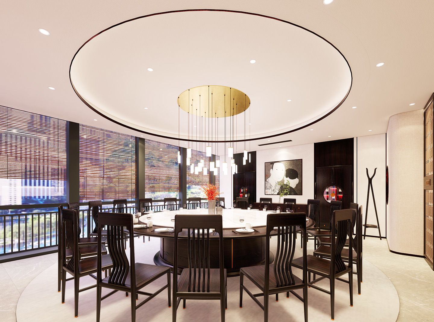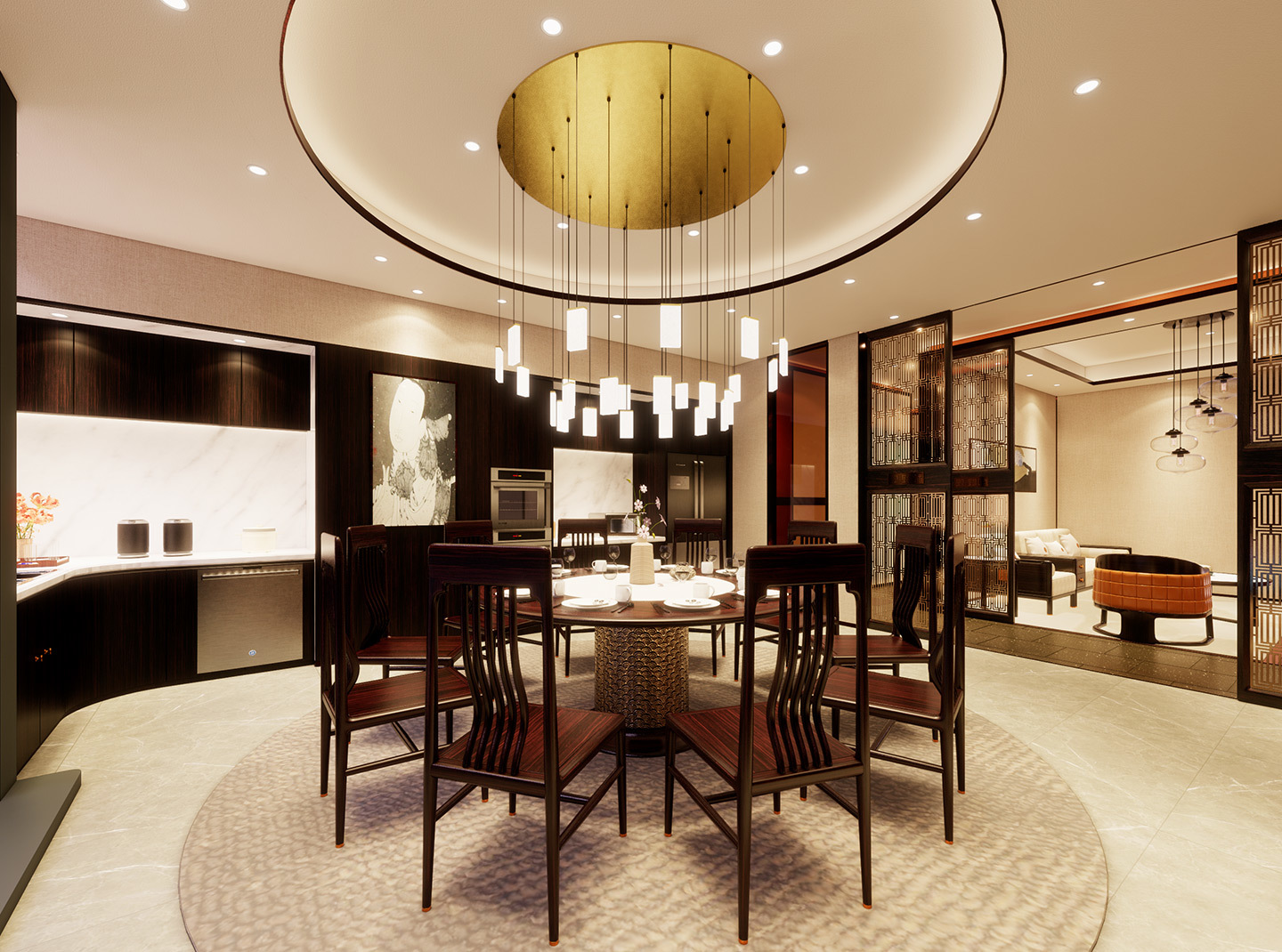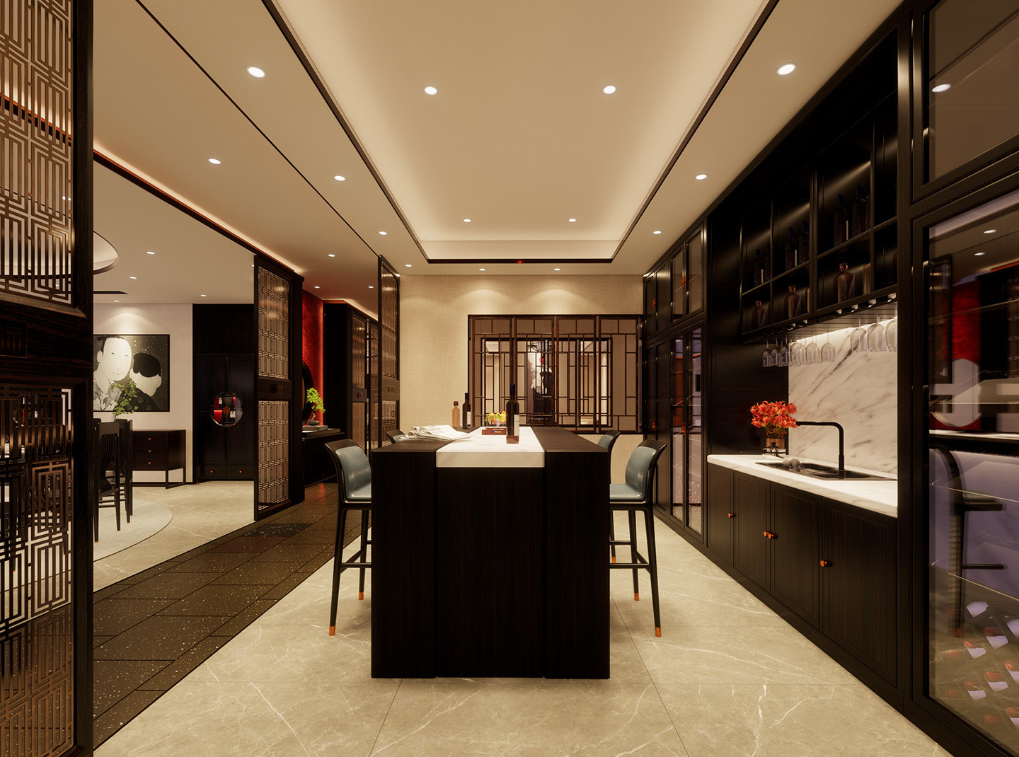 新中式家具在會所餐廳中的應用是一種將傳統(tǒng)文化與現(xiàn)代設計結(jié)合的創(chuàng)新方式,既傳承了中國傳統(tǒng)文化的精髓,又符合現(xiàn)代人的審美和功能需求。